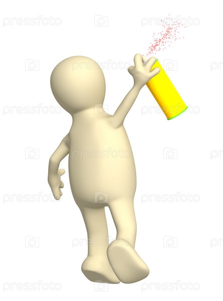 Маленький человек, рисующий с помощью баллона краски