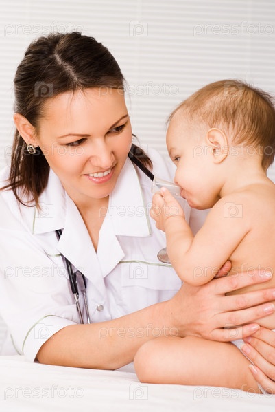 Детский врач обследует маленького ребенка