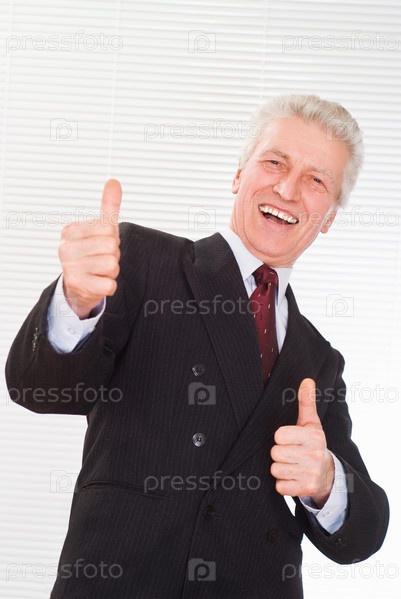 Улыбающийся пожилой бизнесмен, показывающий жест ОК