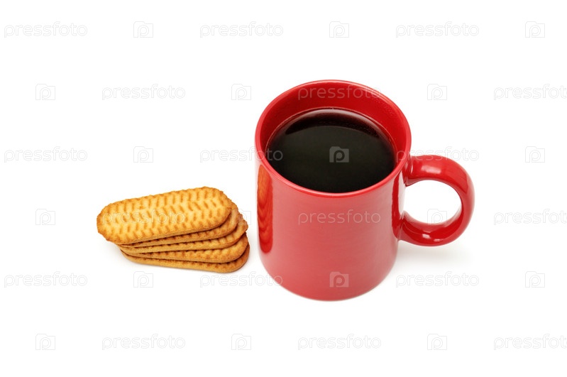 Кружка с кофе и печенье на белом фоне