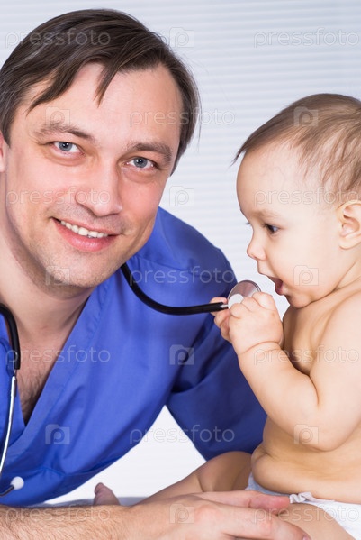 Хороший доктор с новорожденным ребенком