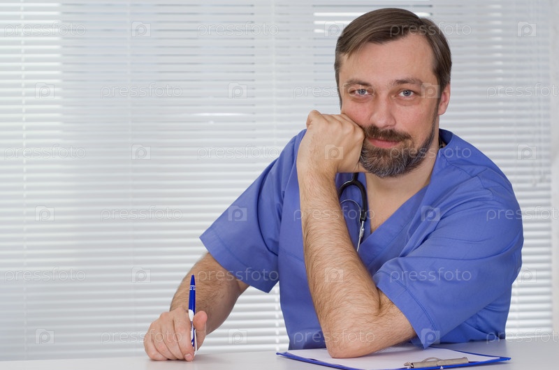 Доктор, сидя за столом