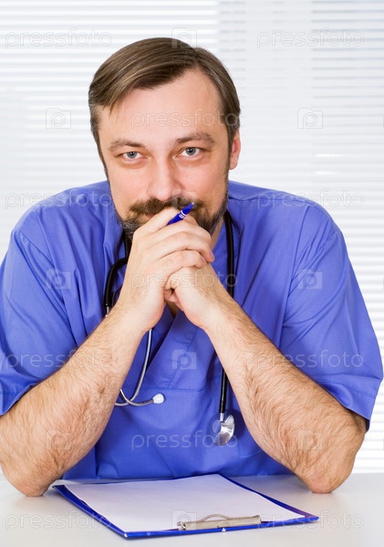 Доктор, сидя за столом