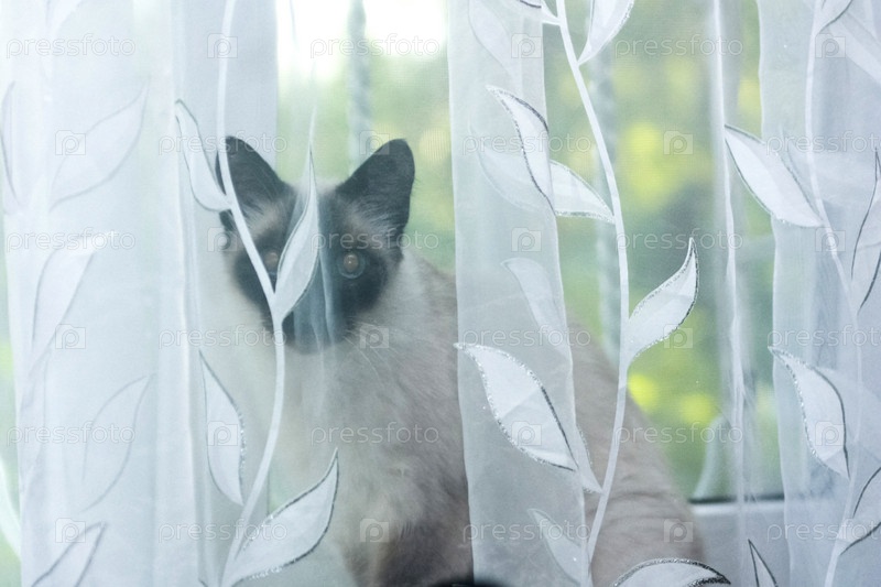 Сиамская кошка на окне