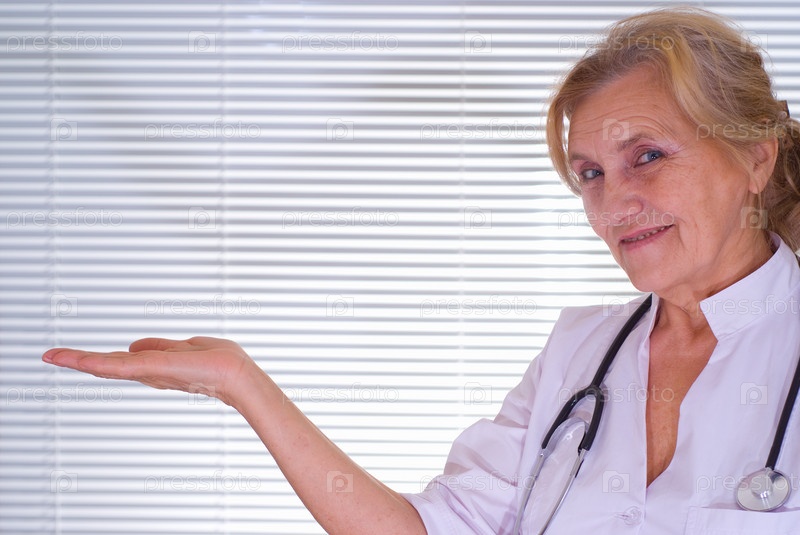 Доктор - пожилая женщина держит руку