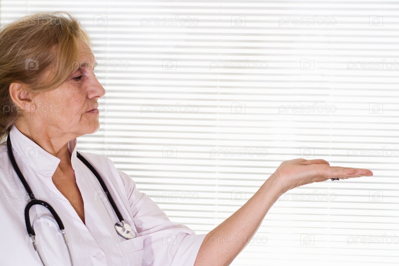 Доктор - пожилая женщина держит руку