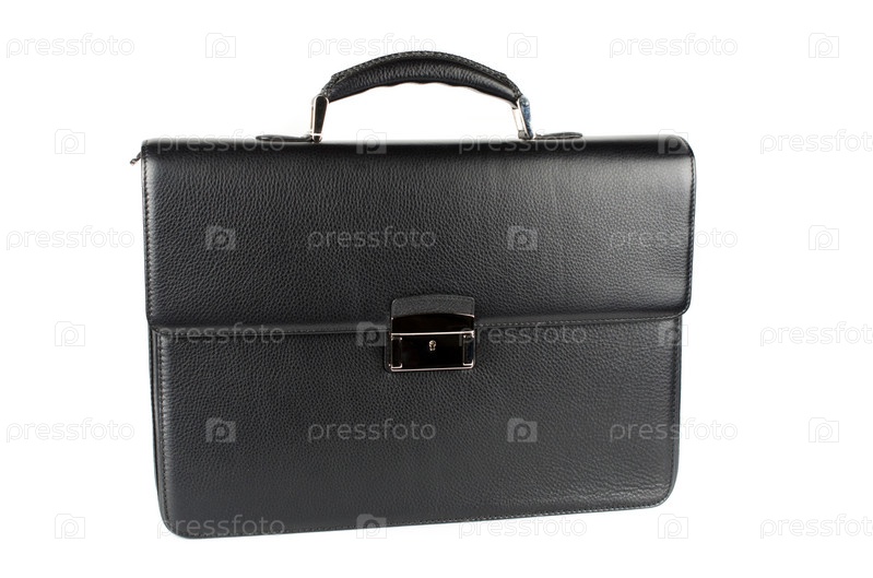 Черный мужской портфель на белом фоне