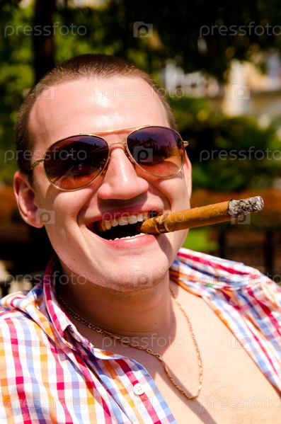Красивый мужчина с сигарой смотрит в камеру
