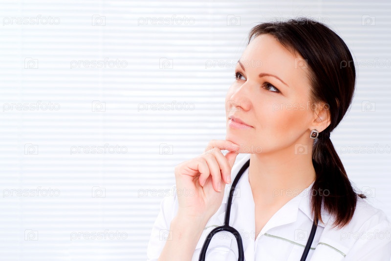 Задумчивая молодая женщина-доктор