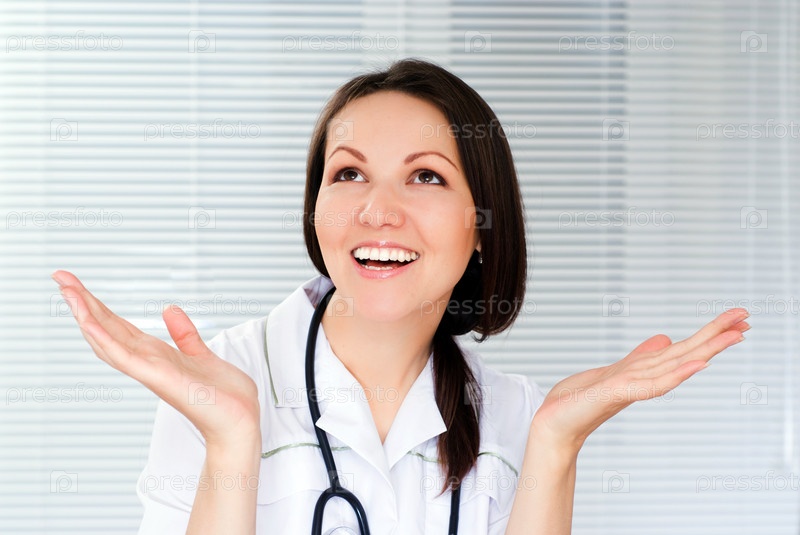 Красивая молодая женщина-доктор радуется