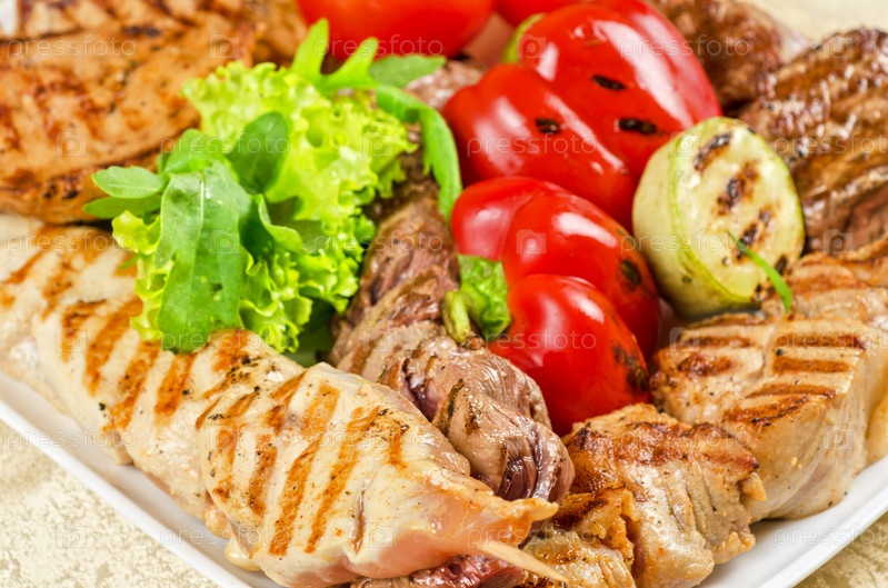 Барбекю: мясо с овощами и зеленью
