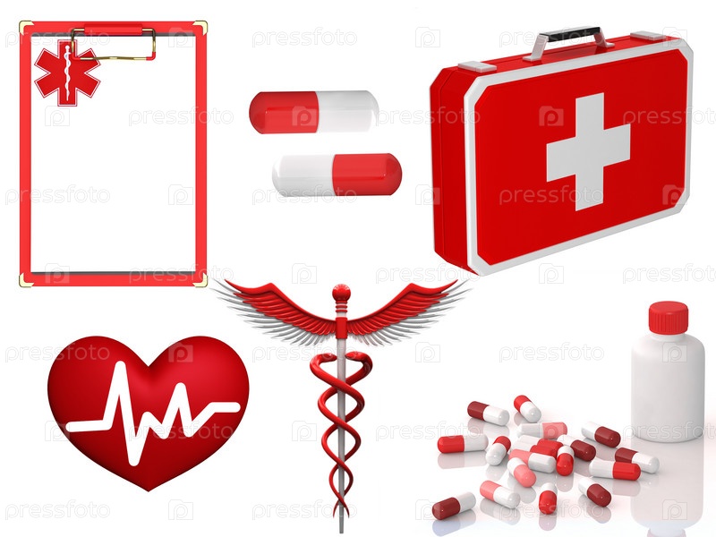 Иллюстрация медицинской аптечки с ее составляющими