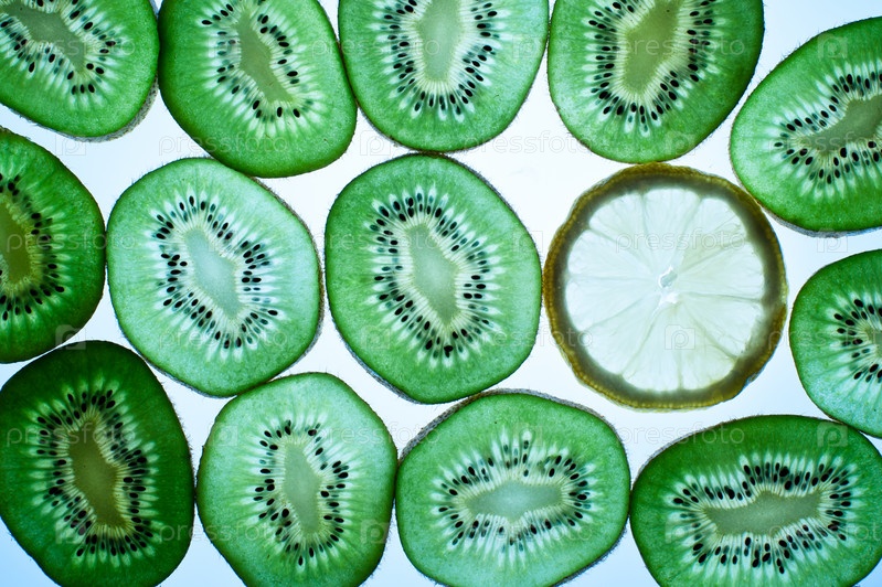 Киви и ломтик лимона на белом фоне