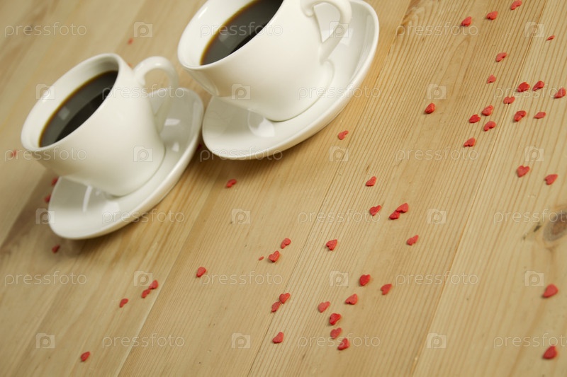 Две чашки кофе на деревянной поверхности