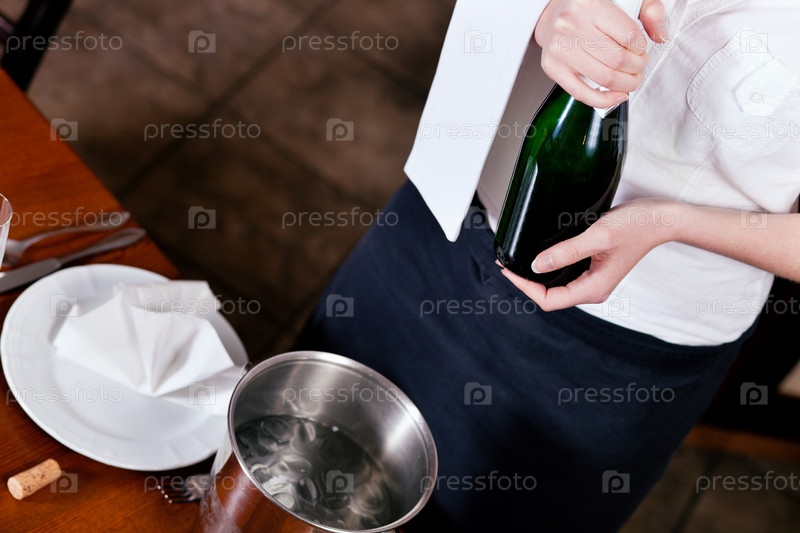 Официантка с бутылкой шампанского