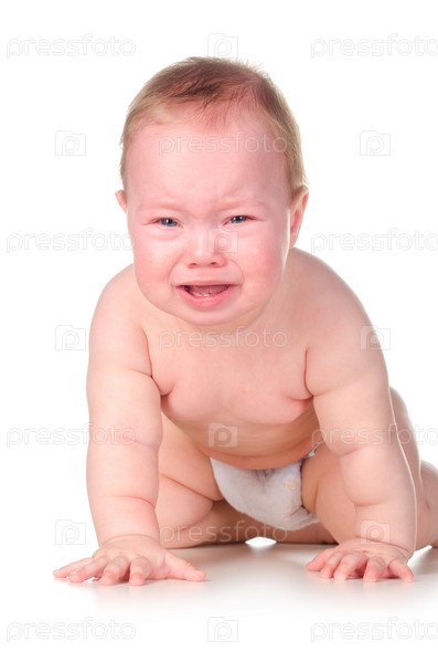 Плачущий младенец на белом фоне