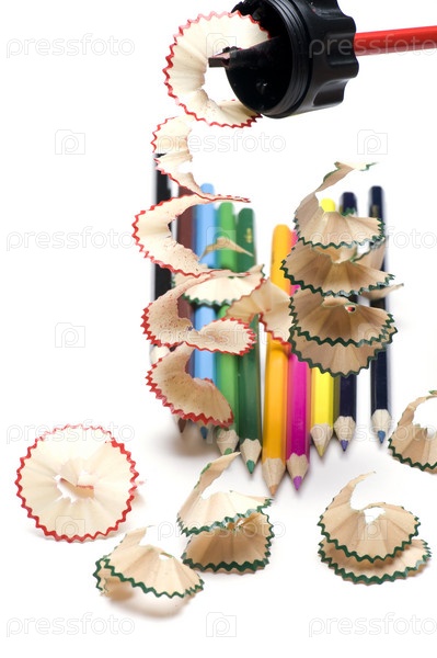 Объект на белом - карандаш и стружки макро