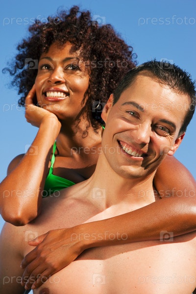 Молодой человек держит свою подругу на плечах