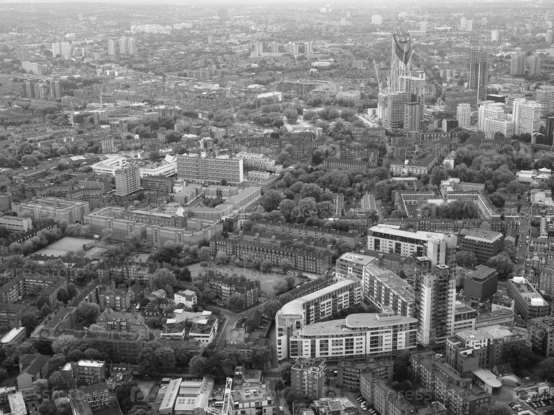 Аэрофотосъемка города Лондон, Великобритания в черно-белом