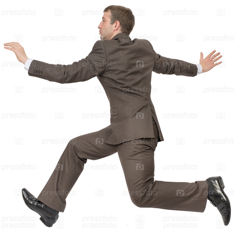 Бизнесмен в костюме, бежит