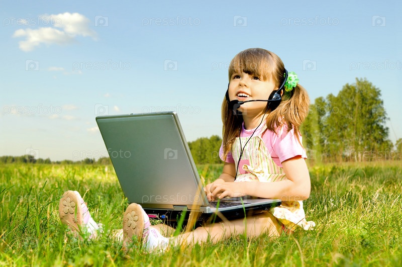 Маленькая девочка с компьютером