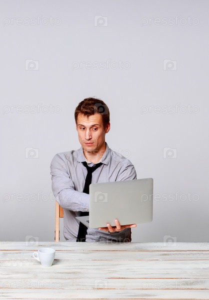 Человек, работающий на ноутбуке в офисе