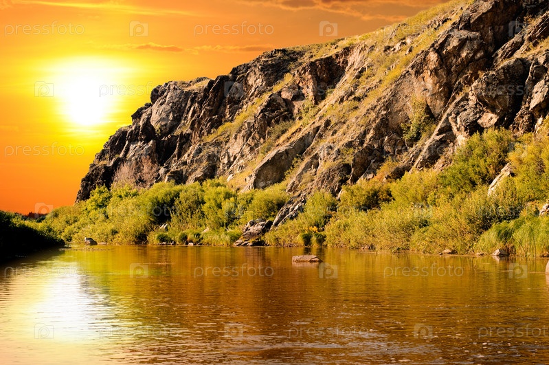 Закат на скалистом берегу