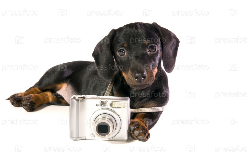 Собака лежит с камерой