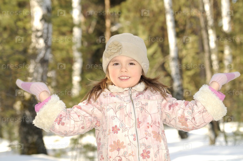 Маленькая девочка зимой в парке