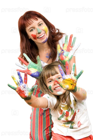 Мать с дочерью рисуют руками