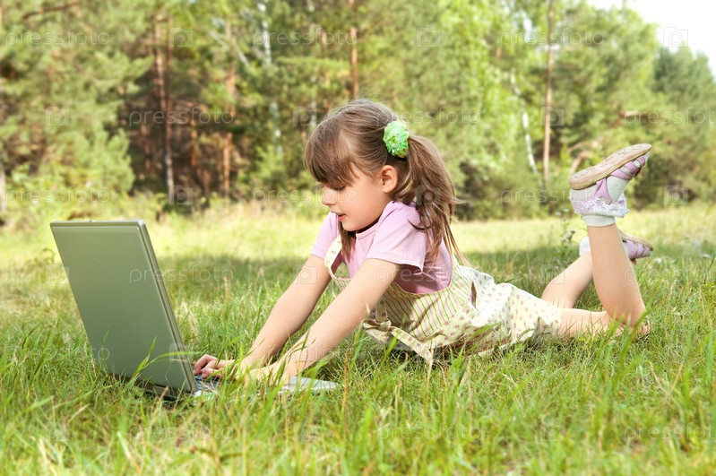 Маленькая девочка с компьютером