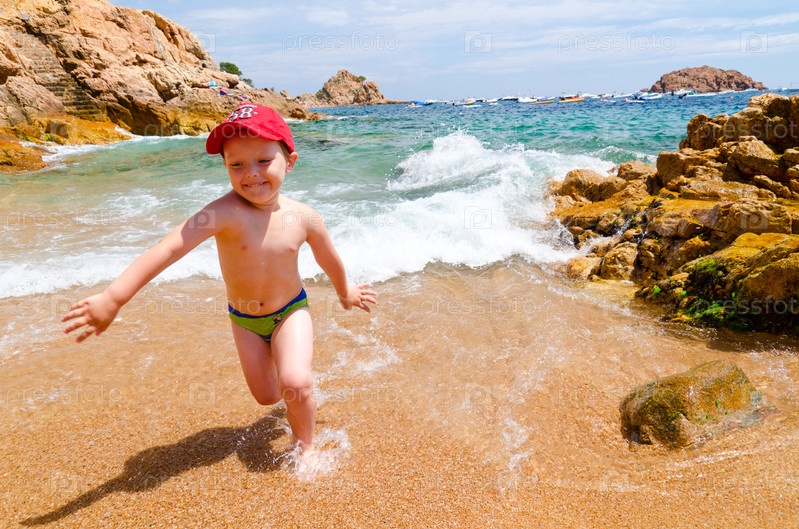 Мальчик играет на побережье моря