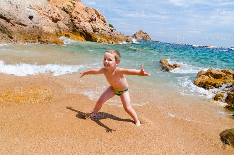 Мальчик играет на побережье моря