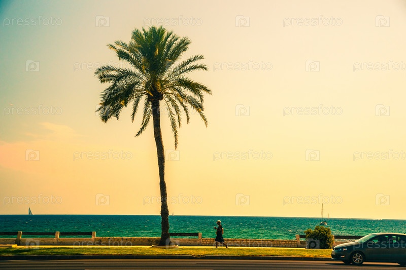 Пальмовые деревья вдоль побережья в Пальма-де-Майорка