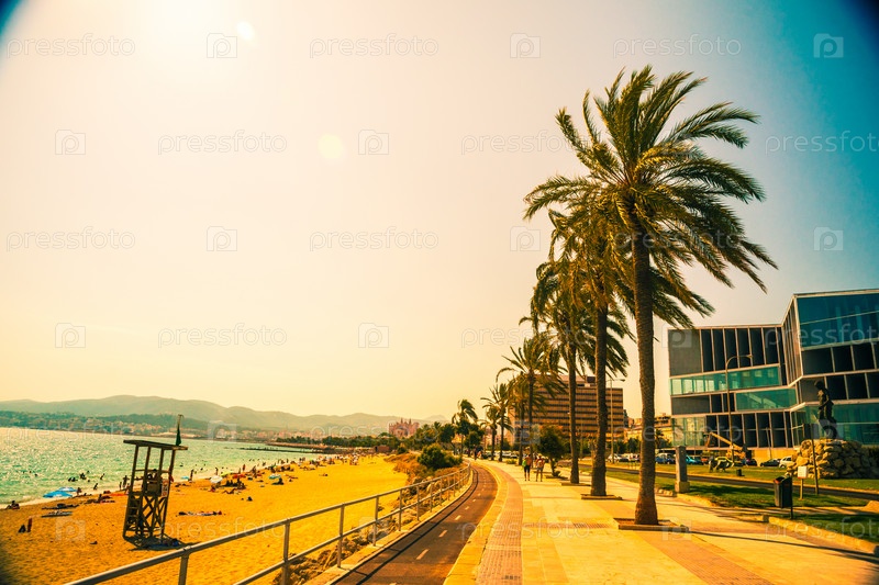 Пальмовые деревья вдоль побережья в Пальма-де-Майорка