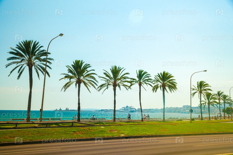 Пальмовые деревья вдоль побережья в Пальма-де-Майорка