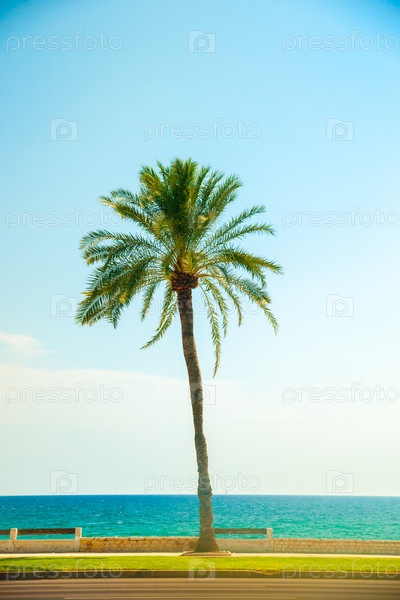 Пальмовые деревья вдоль побережья в Пальма-де-Майорка