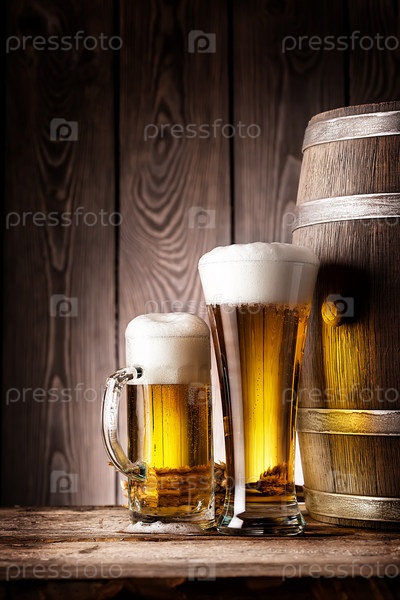 Кружка и бокал с пивом