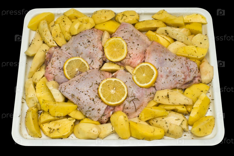 Куриные бедра с картошкой и дольками лимона