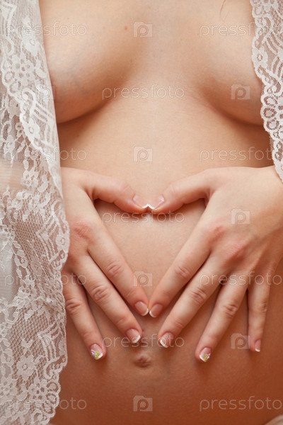 Руки в форме сердца на животе беременной женщины