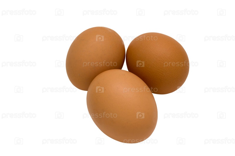 Три куриных яйца на белом фоне
