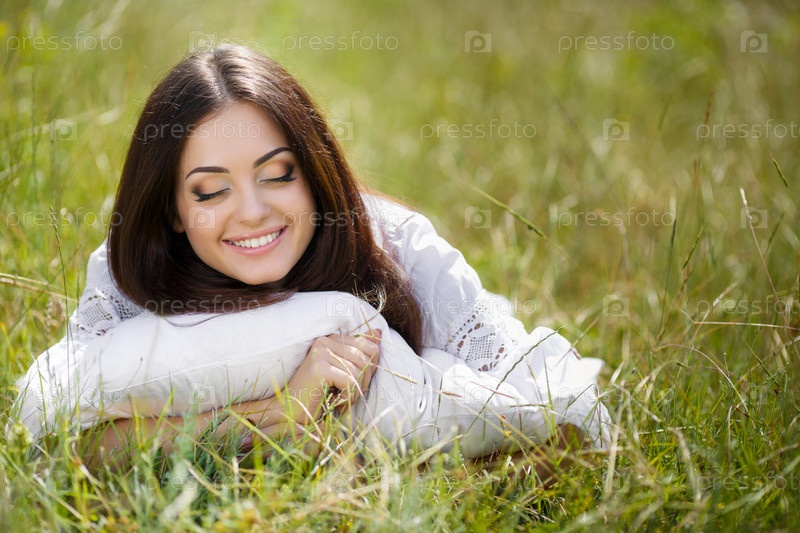 Красивая брюнетка в поле