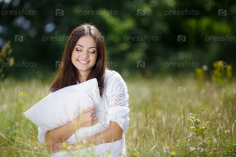 Красивая брюнетка в поле