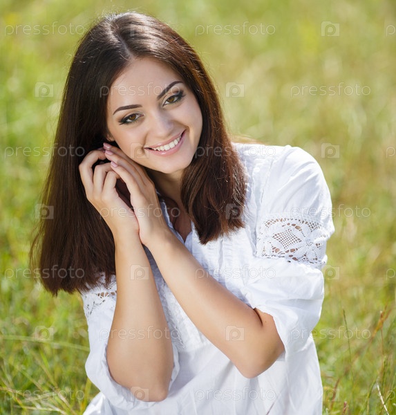Красивая брюнетка в поле