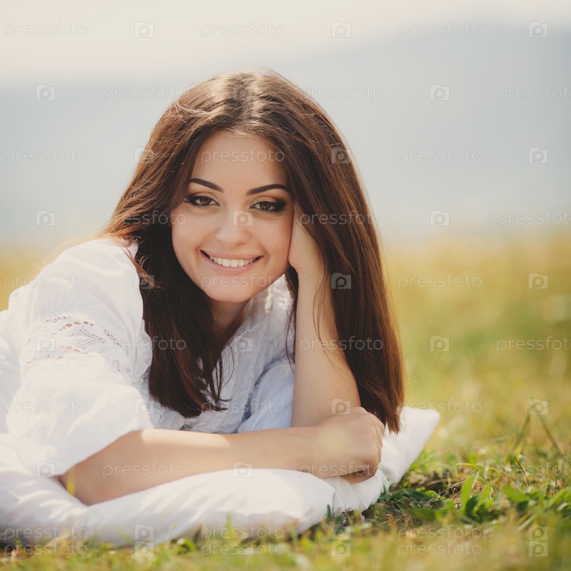 Красивая брюнетка в поле