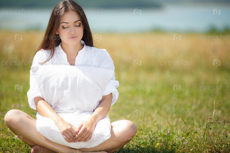 Красивая брюнетка в поле