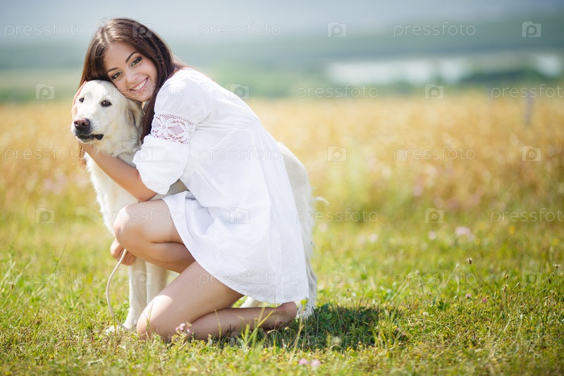 Красивая брюнетка в поле