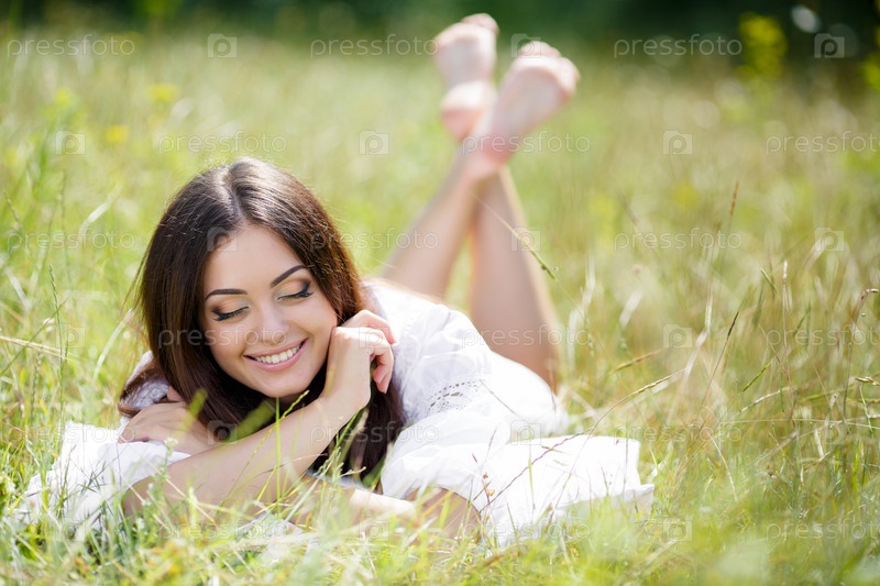 Красивая брюнетка в поле