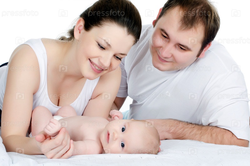 Портрет молодой счастливой семьи с малышом