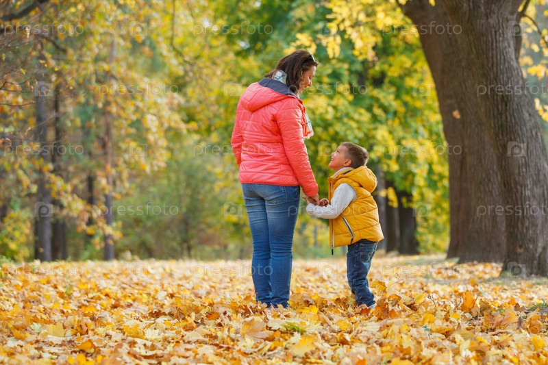 Прелестный мальчик со своей матерью в Осеннем парке